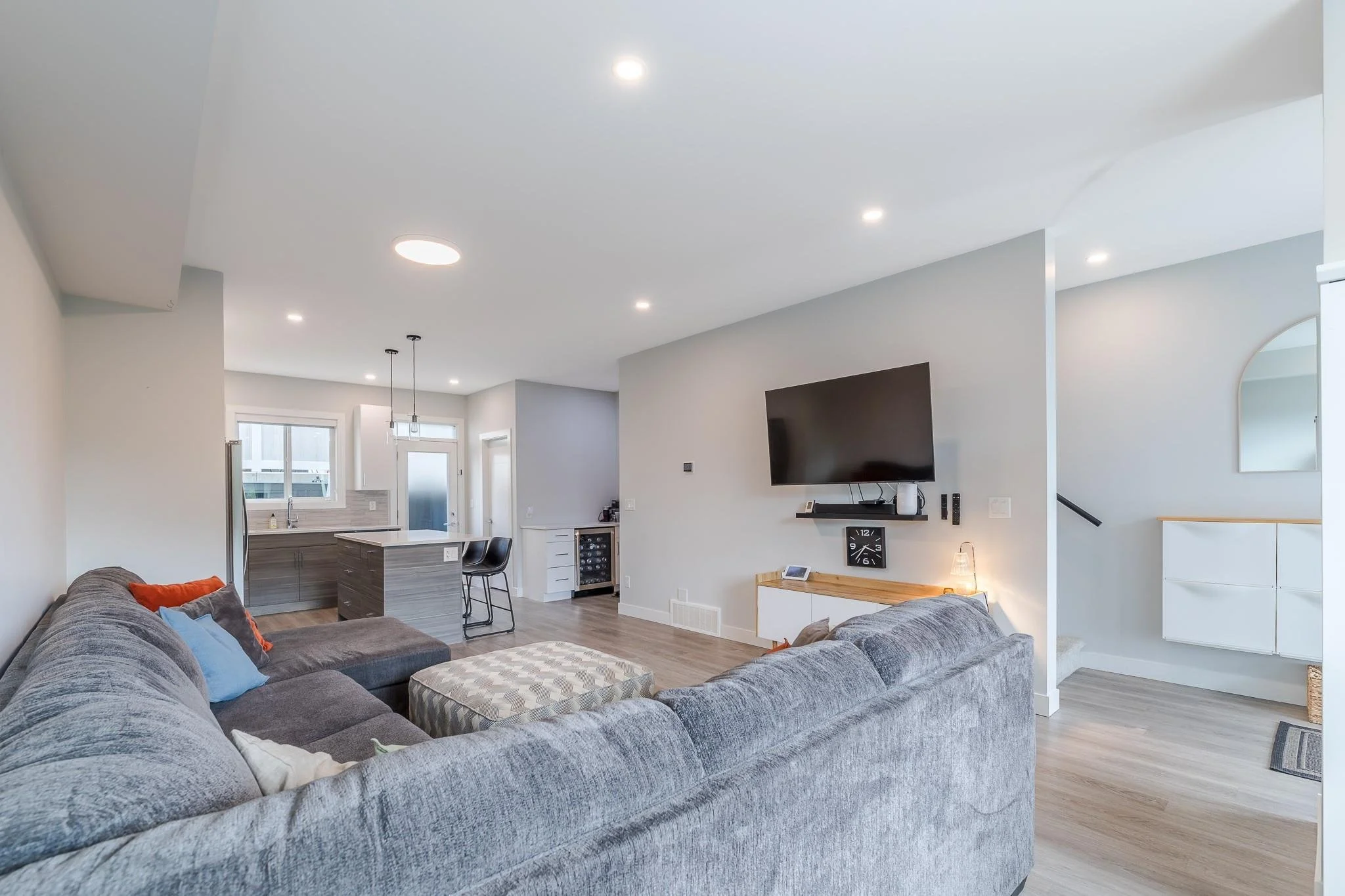 Discover the perfect blend of style, space, and location in this beautifully crafted 4 bedroom, 3 bathroom townhome - just steps from downtown Penticton yet quietly tucked away on a peaceful laneway. Designed for families, entertainers, and lovers of the Okanagan lifestyle, this home offers a bright, open-concept main floor with a spacious living area and a sleek kitchen ideal for hosting or easy dining. Step out onto your large private patio, complete with a gas hookup, and enjoy summer BBQs or unwind under the stars on warm valley evenings. Upstairs, retreat to a generous primary suite featuring a walk-in closet and a private 3-piece ensuite. 2 additional bedrooms, a full 4-piece bathroom, and a convenient laundry room complete the upper level—all enhanced by upgraded flooring and quality finishings throughout. The lower level adds versatility with a rec room, 4th bedroom and 3rd bathroom - perfect for guests, a growing family, or your dream media room. With pet-friendly policies, no age restrictions, low strata fees($210), & ample storage, this home checks every box. Prime central location near the KVR Trail, farmers markets, beaches, and parks, quiet laneway setting for added privacy, spacious layout across 3 levels, private patio with gas hookup, This is your chance to own a true gem in the heart of the South Okanagan. Come see why this townhome is more than just a place to live—it’s a lifestyle. Square footage based on exterior dimensions; buyer to verify if important.
