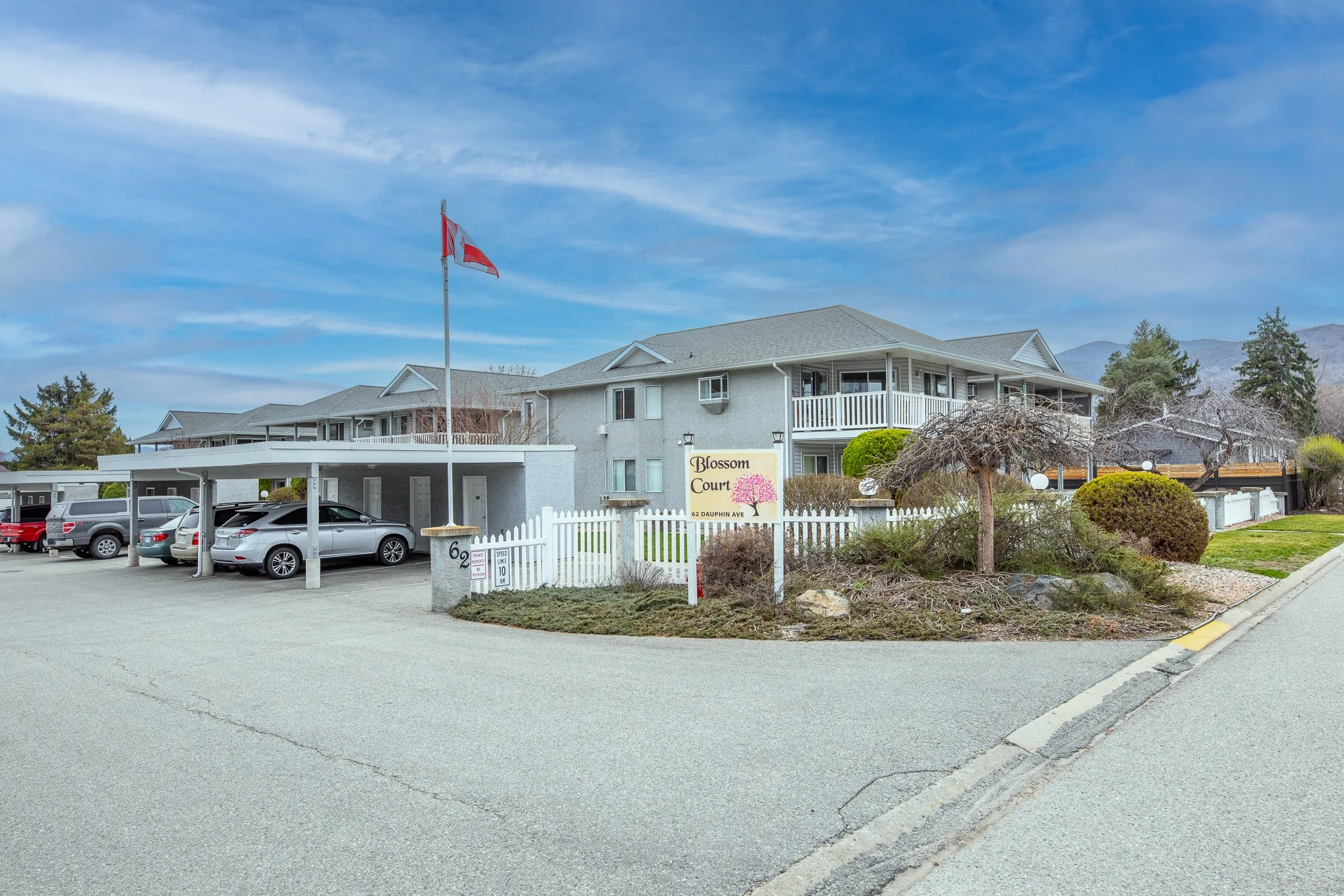 Spacious second-storey unit offering 2 bedrooms and 2 bathrooms, featuring an open and inviting living space. The kitchen is filled with natural light and features a convenient island, along with a charming bay window over the sink that frames beautiful mountain views. Step outside to a covered deck, ideal for relaxing or entertaining. This well-positioned home offers the rare benefit of no shared walls, providing added privacy. The well-maintained strata complex boasts beautifully manicured grounds, all set on a peaceful, low-traffic street. Conveniently located just minutes from Skaha Lake Park and with easy access to nearby shopping and amenities. Additional features include a covered parking space with a storage unit near by. This is a 55+ community, pet-free, offering a quiet and peaceful lifestyle!
