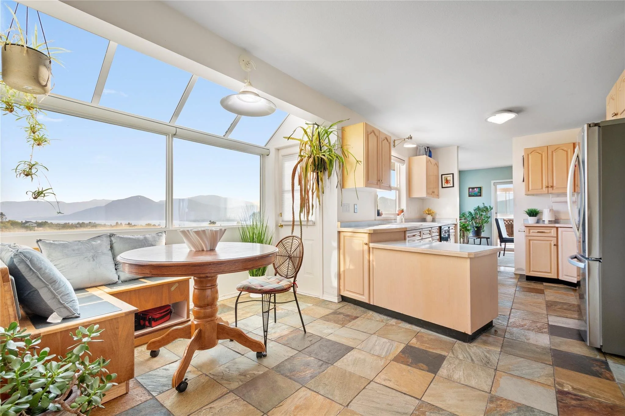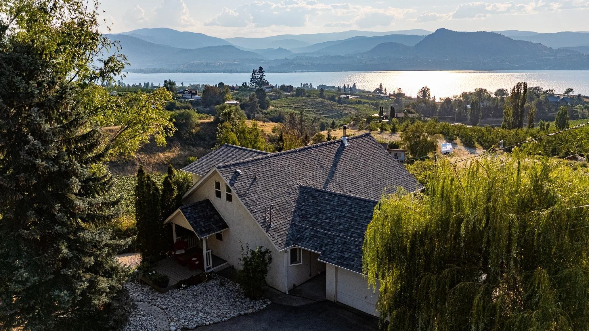 Welcome to this exceptional property located at 4295 North Naramata Road. This home is overlooking rolling vineyards and the sparkling waters of Okanagan Lake. Situated on a gently sloped lot in the heart of wine country, this home blends relaxed country living with a smart investment opportunity. Inside, you’ll find a bright, open-concept main level with expansive windows that frame the breathtaking views. The kitchen offers ample cabinetry and provides a spacious work flow design. The adjoining dining and living areas flow seamlessly to a spacious lake-view deck—perfect for entertaining or quiet evenings. The primary suite features a private balcony, walk-in closet, and ensuite bathroom. There is an additional bedroom and a full bath located on the main level which provides plenty of space for family or guests. Don't forget the self-contained suite which serves as an excellent mortgage helper, guest quarters, or vacation rental, complete with its own entrance, kitchen, and outdoor space. The landscaped grounds include multiple seating areas, garden beds, and parking for vehicles, RVs, or boats. Enjoy easy access to wineries, hiking trails, and the vibrant Naramata village, all while being just minutes from Penticton.
