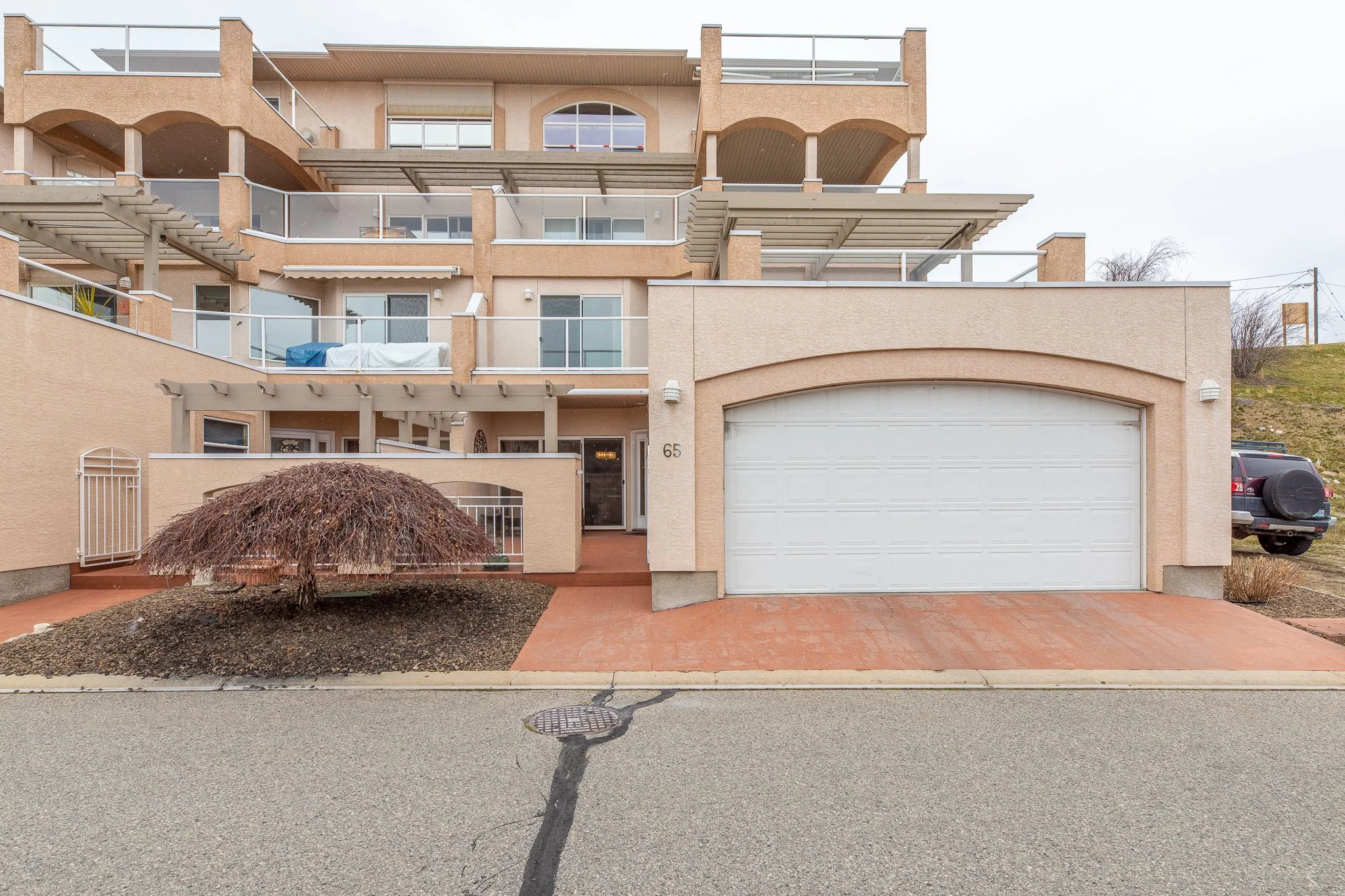 Rare opportunity in the heart of Summerland. This beautifully maintained 2 bedroom, 3 bathroom townhouse offers bright, updated living space just steps from shops, parks, and everyday amenities. What truly sets this home apart is a private in-suite elevator — an exceptionally rare feature that instantly elevates comfort, accessibility, and long-term livability. Properties offering this level of convenience seldom come available. South-facing exposure fills the home with natural light, highlighting fresh paint and stylish updates throughout. Three fully renovated bathrooms add modern appeal, while premium window coverings — many motorized — provide effortless comfort and privacy. The spacious layout is ideal for entertaining, with flexible areas for guests, a home office, or hobbies. Enjoy three generous decks, two featuring motorized awnings for sun or shade on demand. Meticulously maintained and move-in ready, this standout property combines location, functionality, and a rare elevator feature — an opportunity not often found in today’s market.